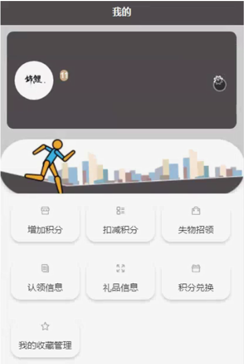 学生,在我的页面可以对增加积分、扣减积分、失物招领、认领信息、礼品信息、积分兑换、我的收藏管理等详细信息进行操作,如图5-7所示。