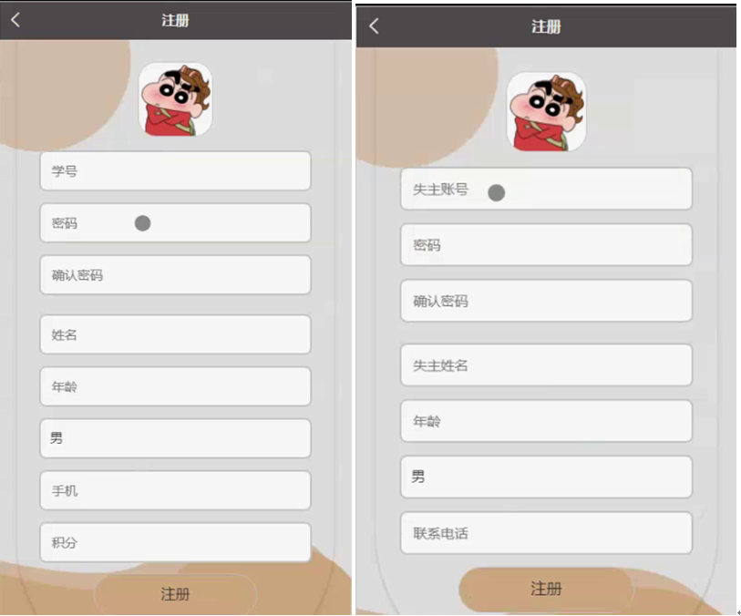 学生和失主注册,在用户注册页面,学生和失主通过填写用户注册信息进行注册操作,如图4-2所示。