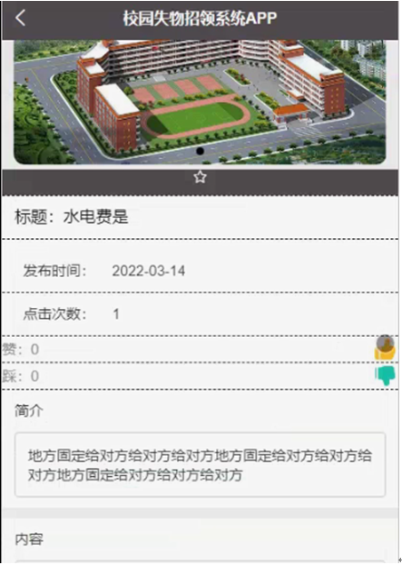 校园信息,在校园信息页面可以查看标题、图片、发布时间、内容等信息,并根据需要进行收藏操作,如图4-4所示。