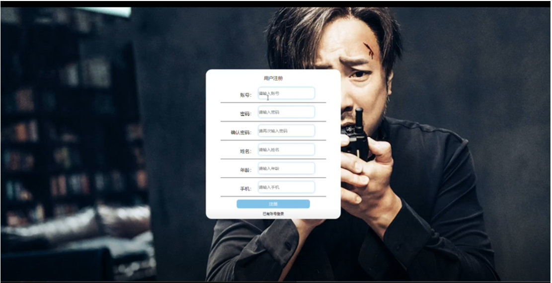 用户注册,在用户注册页面通过填写用户账号、密码、确认密码、姓名,年龄、手机号码等信息完成用户注册,如图5-2所示。