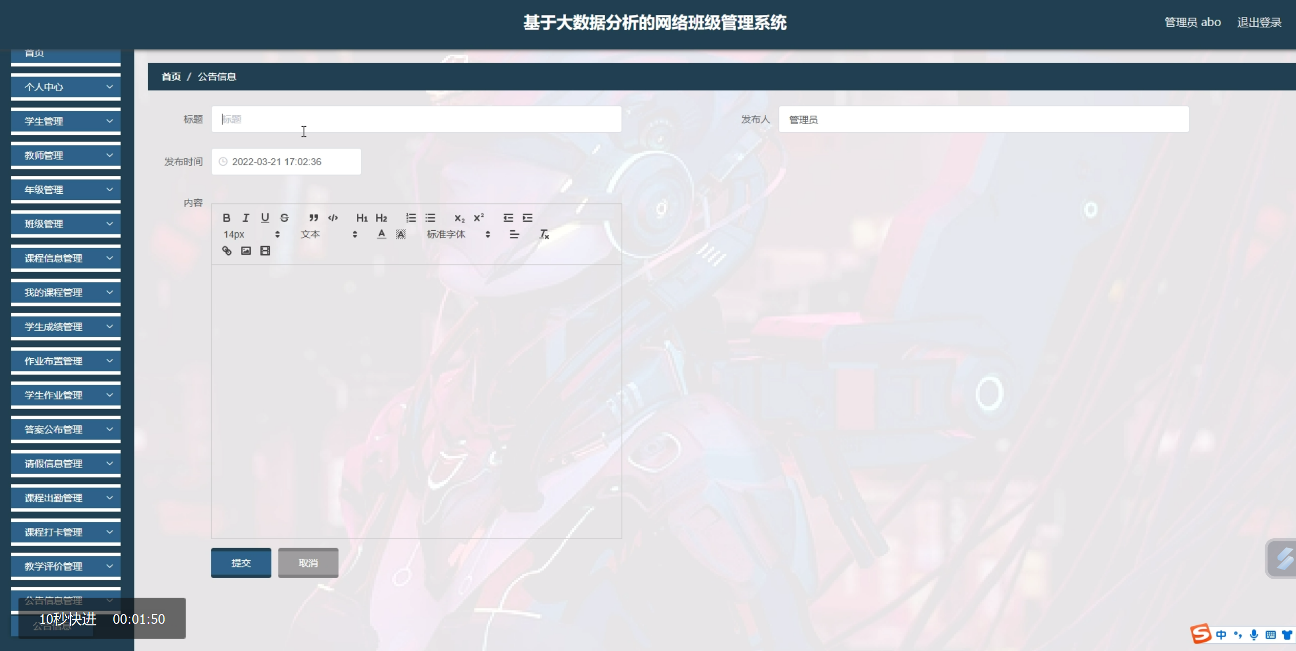 8.后台路径地址:localhost:8080/项目名称/jsp/index.jsp