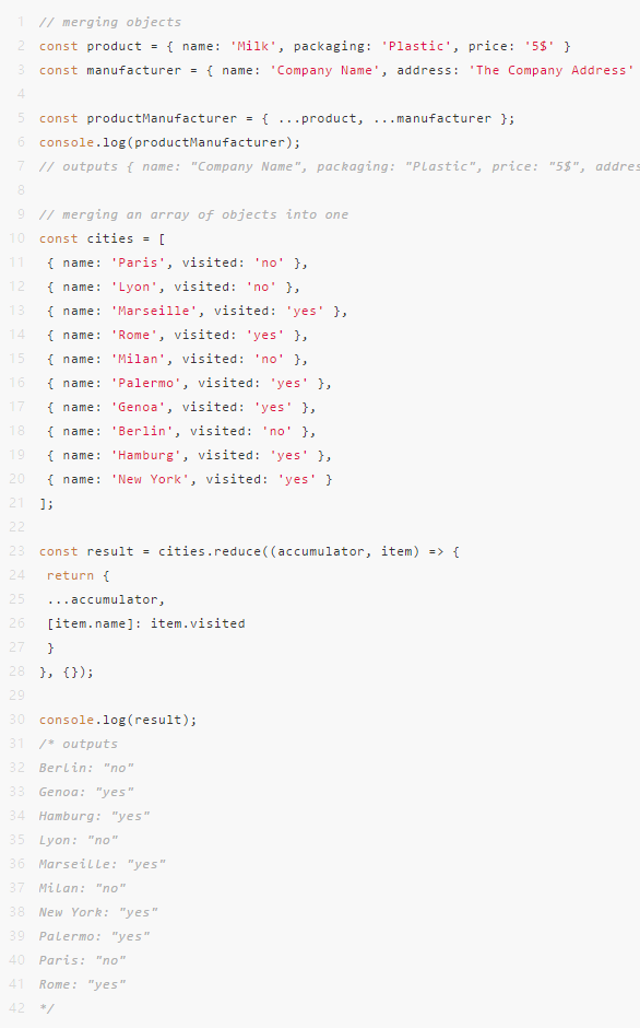 对象合并是很常见的事情,我们可以使用新的ES6特性来更好,更简洁的处理合并的过程。