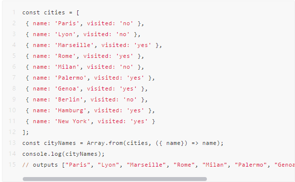 有时候一个对象包含很多属性,而我们只需要其中的几个,这里可以使用解构方式来提取我们需要的属性。如一个用户对象内容如下: