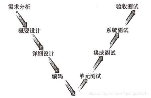 - 主要思想:开发和测试同等重要,左侧代表开发活动,而右侧代表测试活动