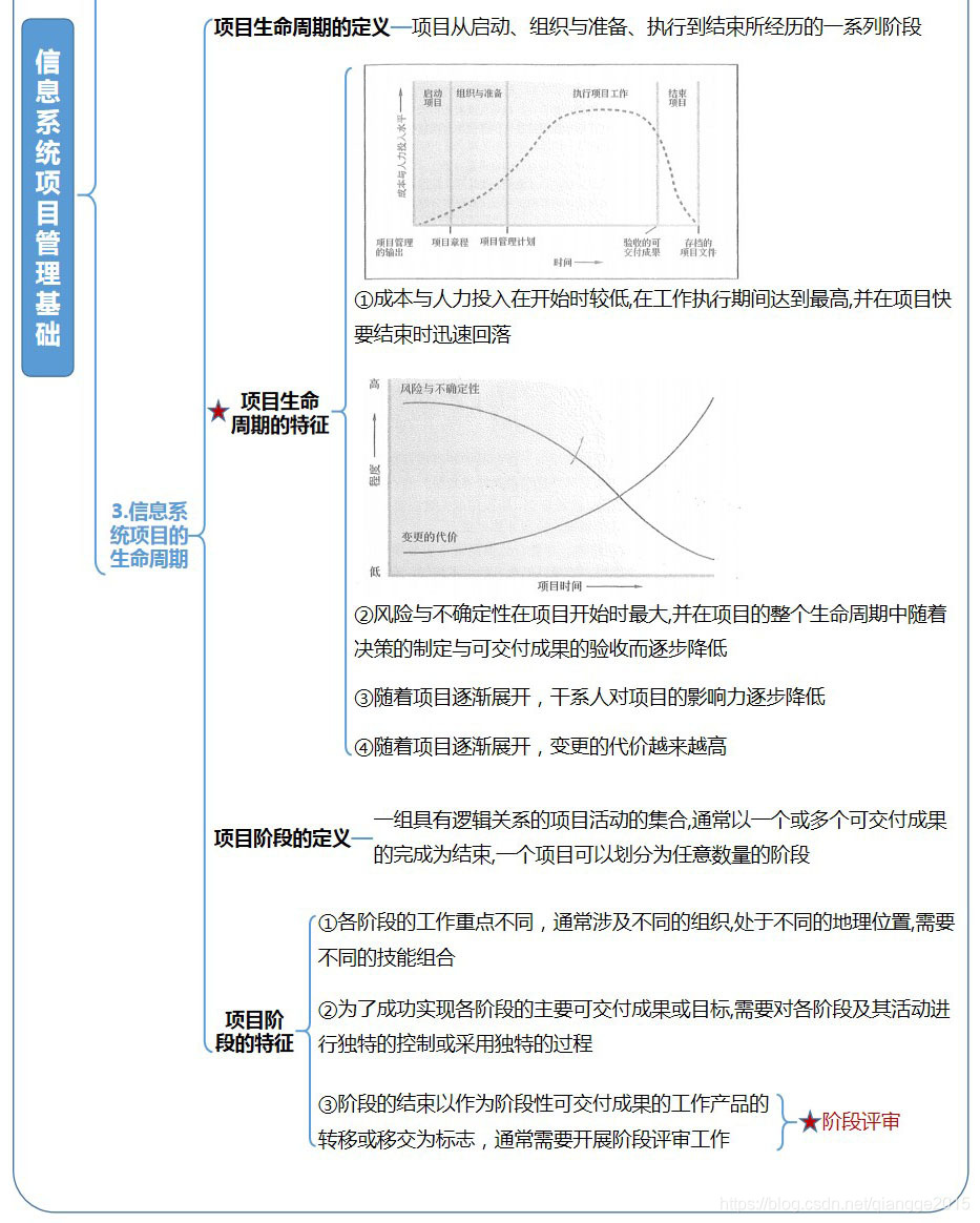 ①各阶段的工作重点不同,通常涉及不同的组织,处于不同的地理位置,需要不同的技能组合。