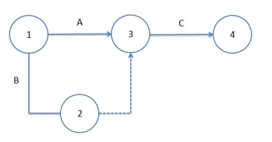 - ①人为引入了一种额外的、特殊的活动,在网络图中由一个虚箭线表示