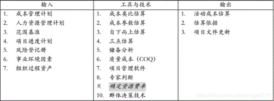 概念:对完成项目活动所需资金进行近似估算的过程, 其主要作用就是,确定完成项目工作所需的成本数额。
