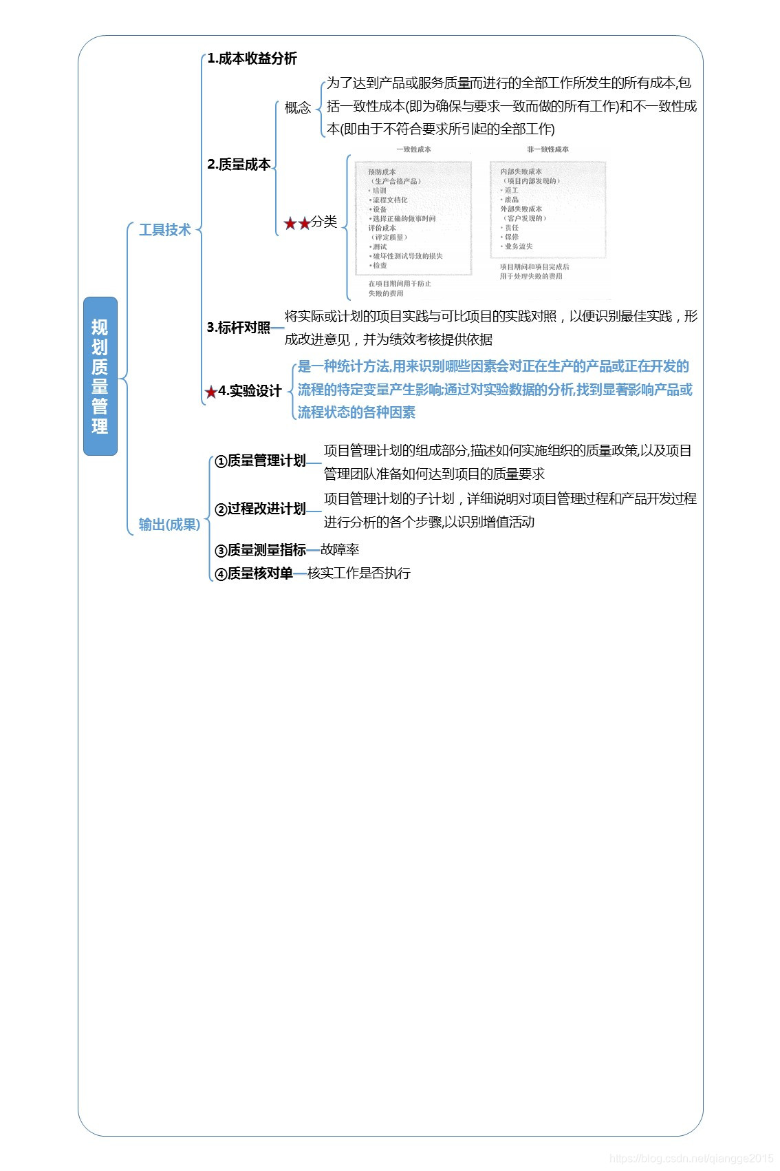 ①质量管理计划:项目管理计划的组成部分,描述如何实施组织的质量政策,以及项目管理团队准备如何达到项目的质量要求。