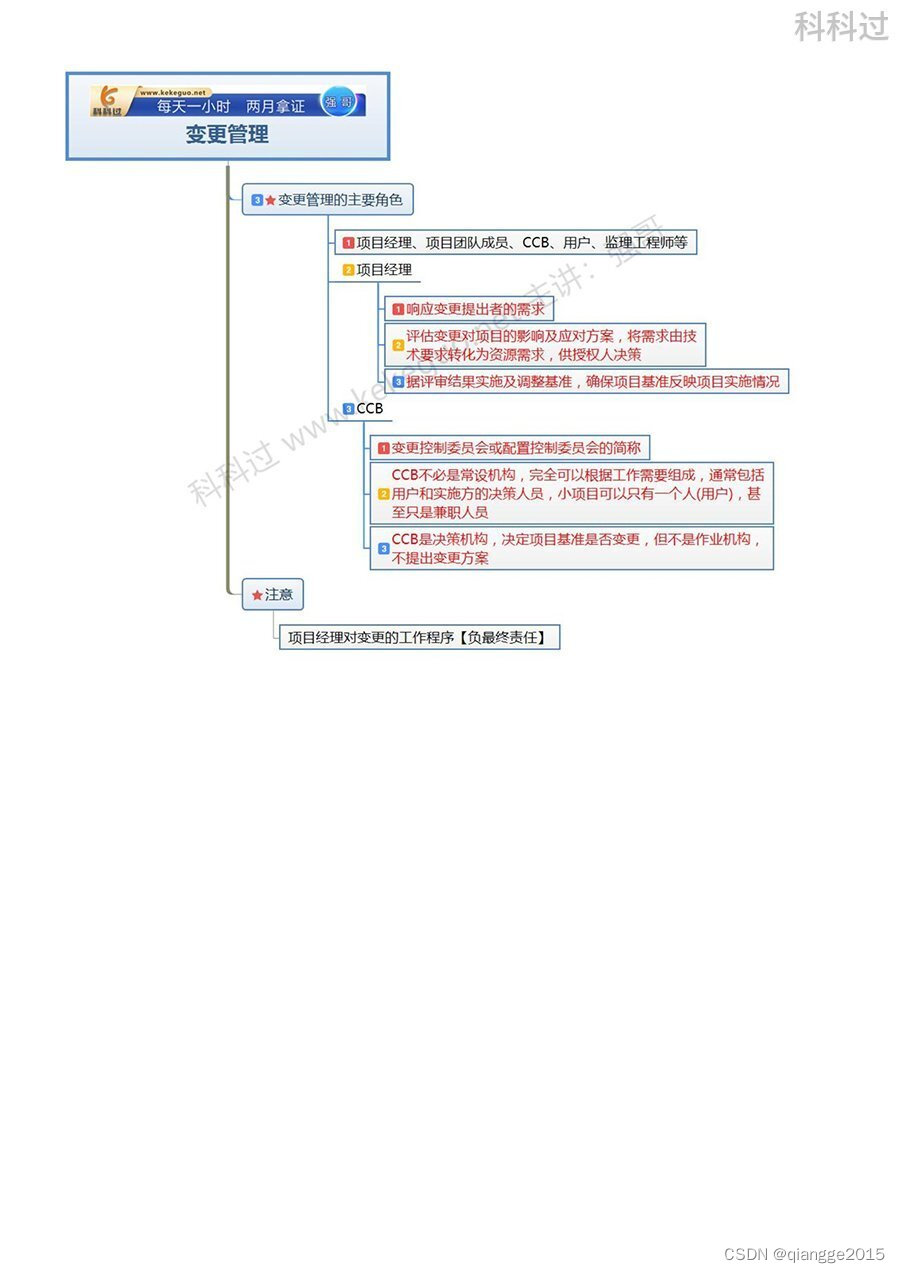 科科过为您带来软考信息系统项目管理师核心重点考点(五十八)变更管理的主要角色,内含思维导图+真题