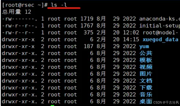 - -l 列出⽂件的详细信息,如创建者,创建时间,⽂件的读写权限列表等等,⻓列表