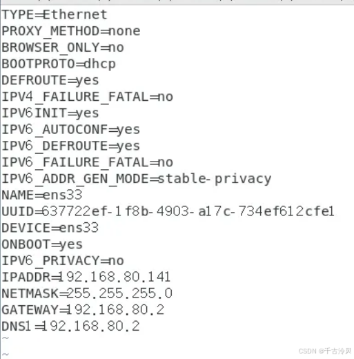 [root@rsec ~]# vim /etc/sysconfig/network-scripts/ifcfg-ens33