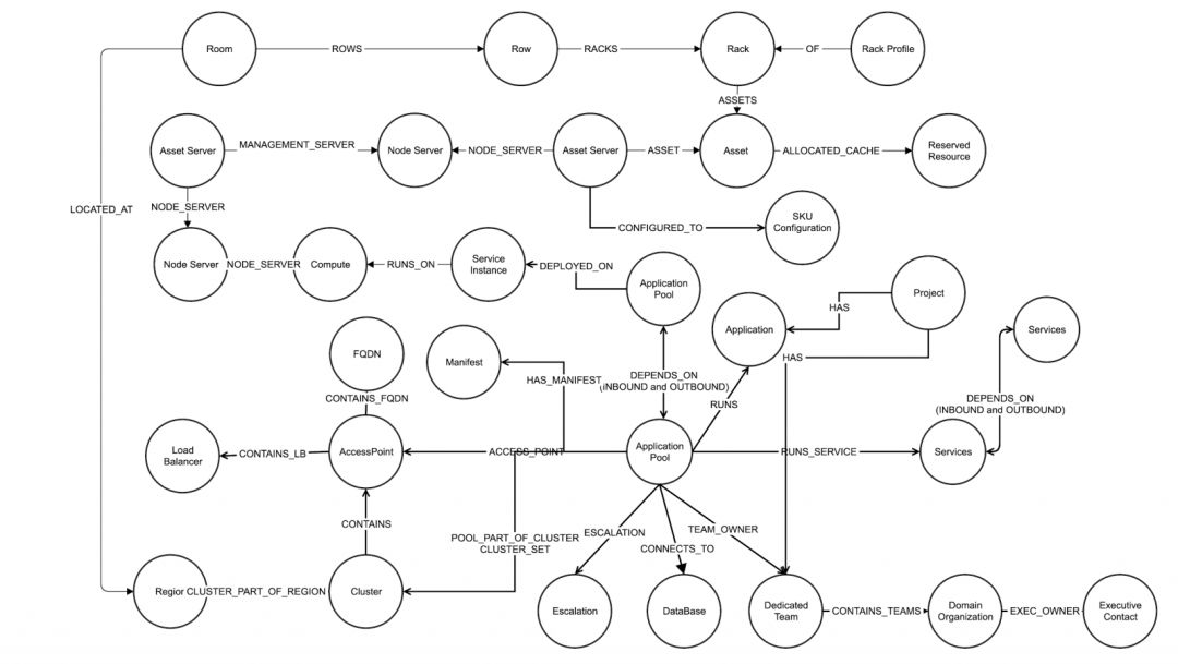 图是使用实时度量、业务特性和运营元数据构建的。最终,图的目的是链接数据源并打破孤立的管理域之间的界限。以下是较高层次的描述: