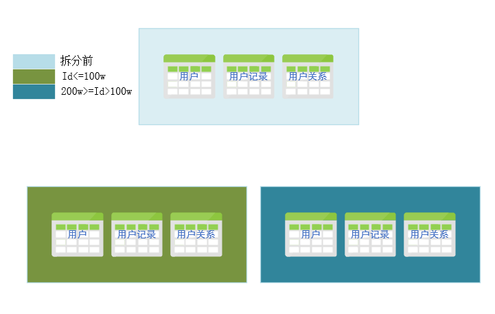在数据库垂直拆分后遇到单机数据库性能瓶颈之后,就可以考虑数据库水平拆分了。之所以先垂直拆分才水平拆分,是因为垂直拆分后数据业务清晰而且单一,更加方便指定水平的标准。比如我们对商城业务垂直拆分后的 用户系统 进行水平拆分就比对整个商城业务进行水平拆分好找维度,我们可以根据用户注册时间的区间、用户的区域或者用户 ID 的范围、 hash 等条件,然后关联相关表的记录将数据进行拆分,如果放在整个商城业务上你是以用户为准还是以订单为准都不太好考虑。