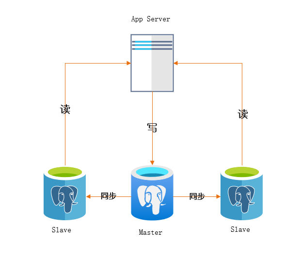 这个相对比较好理解一些,就是将数据库分为主从库,一个主库(Master)用于写数据,多个从库(Slaver)进行轮询读取数据的过程,主从库之间通过某种通讯机制进行数据的同步,是一种常见的数据库架构。下面这张图就展示了 “一主二从” 的结构: