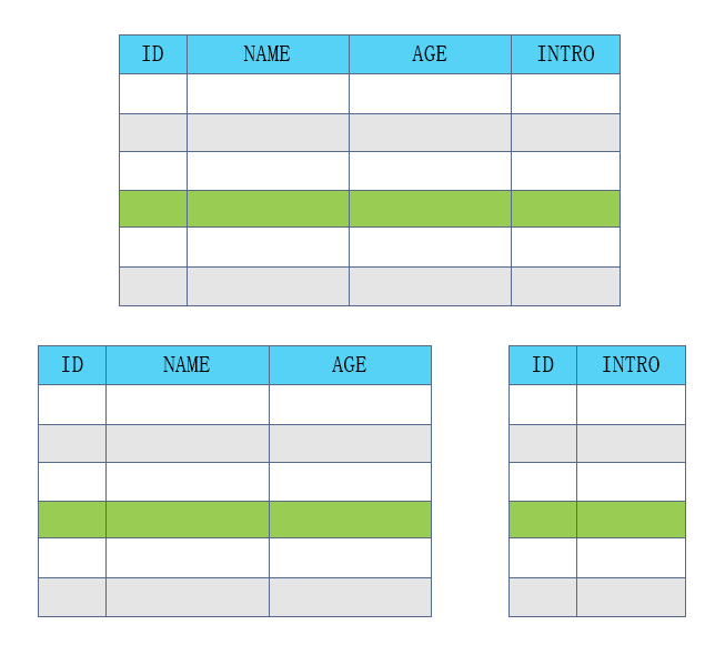 数据表垂直拆分就是纵向地把表中的列分成多个表,把表从“宽”变“窄”。一般遵循以下几个点进行拆分:
