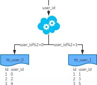 注:写入时,基因法生成user_id,如图。关于xbit基因,例如要分8张表,23=8,故x取3,即3bit基因。根据user_id查询时可直接取模路由到对应的分库或分表。根据user_name查询时,先通过user_name_code生成函数生成user_name_code再对其取模路由到对应的分库或分表。id生成常用snowflake算法。