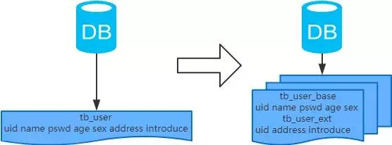 4、分析:可以用列表页和详情页来帮助理解。垂直分表的拆分原则是将热点数据(可能会冗余经常一起查询的数据)放在一起作为主表,非热点数据放在一起作为扩展表。这样更多的热点数据就能被缓存下来,进而减少了随机读IO。拆了之后,要想获得全部数据就需要关联两个表来取数据。但记住,千万别用join,因为join不仅会增加CPU负担并且会讲两个表耦合在一起(必须在一个数据库实例上)。关联数据,应该在业务Service层做文章,分别获取主表和扩展表数据然后用关联字段关联得到全部数据。