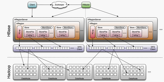 了解调用 Hbase API方式导入流程之前,我们先来看一张 hbase的架构图。