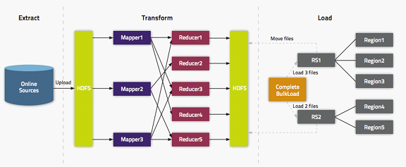 – 大量数据一次性加载到 HBase。
