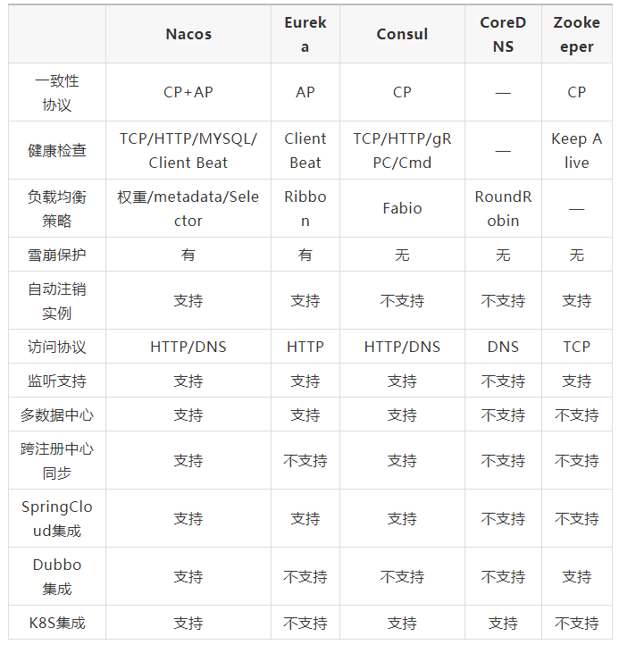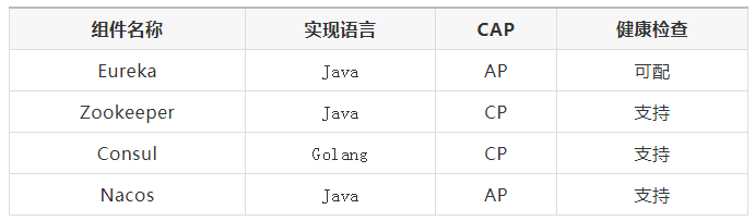 这四个组件虽然都实现了注册中心的功能,但是他们的功能和实现方式都有不同的地方,也各有各的优点,单从注册中心方面来比价四个注册中心(如果不了解CAP定理可先阅读下一章节):