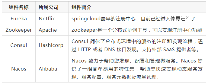 springcloud支持的注册中心有Eureka、Zookeeper、Consul、Nacos