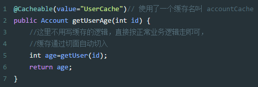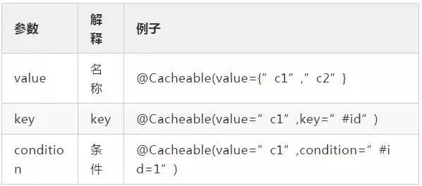 比如@Cacheable(value="UserCache") 标识的是当调用了标记了这个注解的方法时,逻辑默认加上从缓存中获取结果的逻辑,如果缓存中没有数据,则执行用户编写查询逻辑,查询成功之后,同时将结果放入缓存中。