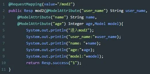 标记在方法的参数上,会将客户端传递过来的参数按名称注入到指定对象中,并且会将这个对象自动加入ModelMap中,便于View层使用.我们在上面的类中加入一个方法如下