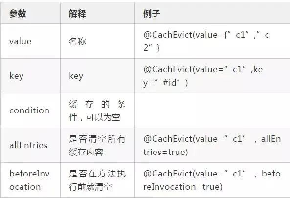 用来标记要清空缓存的方法,当这个方法被调用后,即会清空缓存。@CacheEvict(value=”UserCache”)