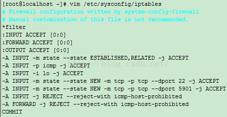 在“-A INPUT -m state --state NEW -m tcp -p tcp --dport 22 -j ACCEPT”下面添加一行-A INPUT -m state --state NEW -m tcp -p tcp --dport 5901 -j ACCEPT
