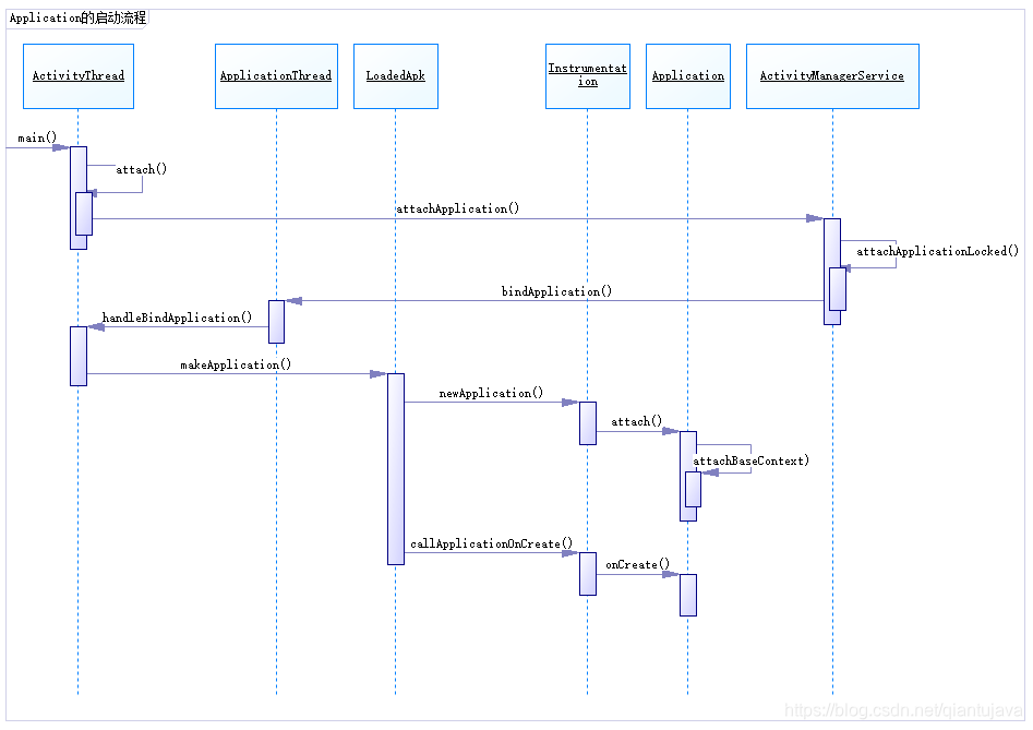 到这里就是我们熟悉的Application.onCreate()了,对于一个Android应用的入口就是这里了,跑完onCreate()就会启动Activity,或者Service等。