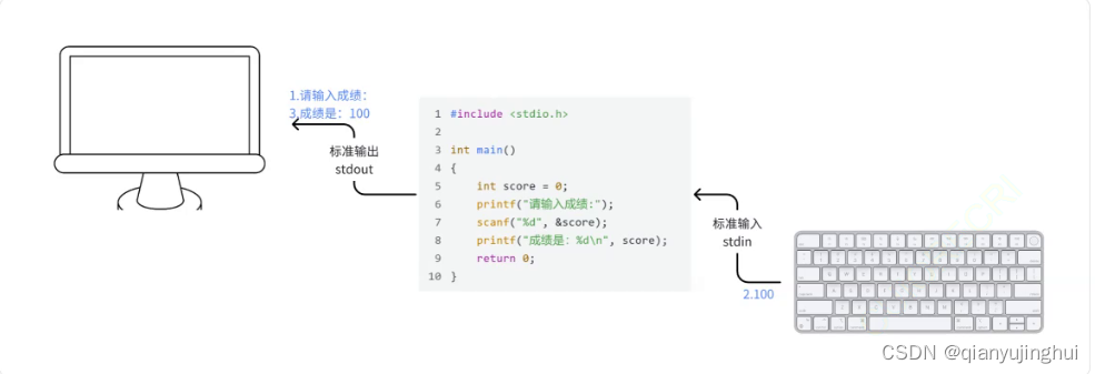 注:标准输⼊⼀般指的就是键盘,标准输出⼀般指的就是屏幕