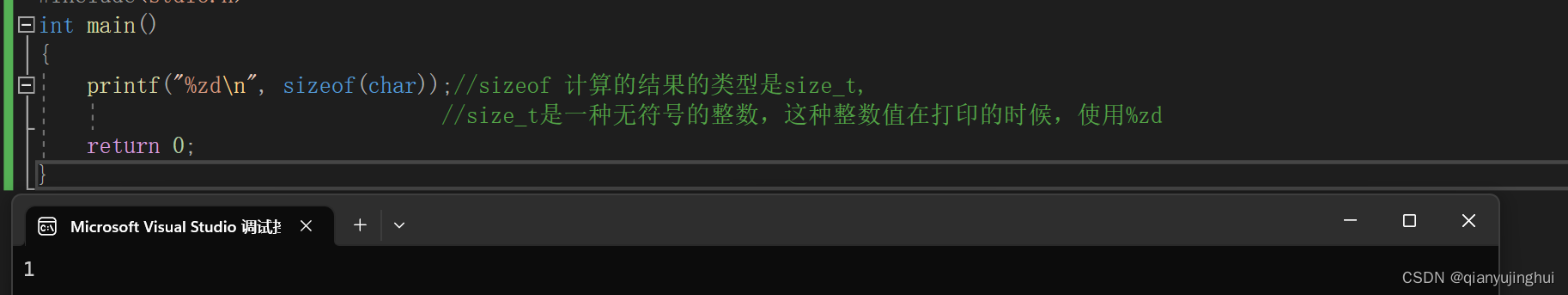- unsigned 关键字,表⽰该类型不带有正负号,只能表⽰零和正整数。