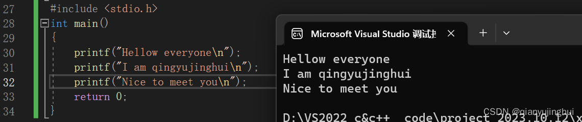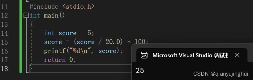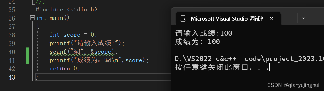 1 #include <stdio.h> 2 3 int global = 2023;//全局变量 4 5 int main() 6 { 7 int local = 2018;//局部变量 8 printf("%d\n", local); 9 printf("%d\n", global); 10 return 0; 11 }如果局部和全局变量,名字相同呢?