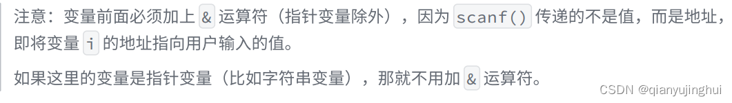 - 因为 %s 不会包含空⽩字符,所以⽆法⽤来读取多个单词,除⾮多个 %s ⼀起使⽤。这也意味着, scanf() 不适合读取可能包含空格的字符串,⽐如书名或歌曲名。另外, scanf() 遇到 %s 占位 符,会在字符串变量末尾存储⼀个空字符 \0 。