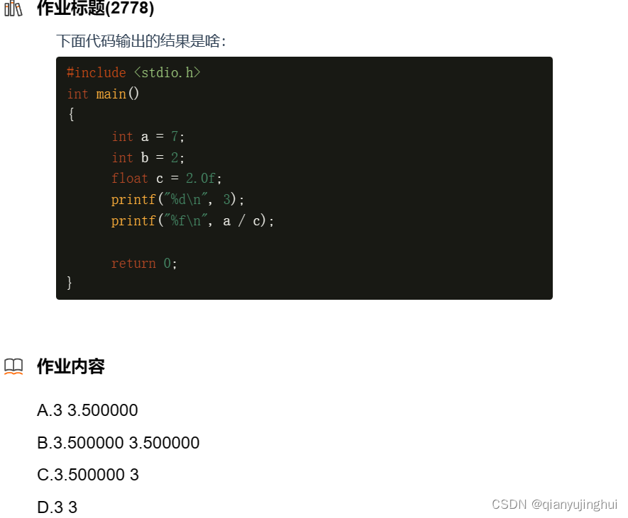 - 除法的2个操作数只要有一个数是浮点数,执行的就是小数除法,所以a/c是按照小数除法计算的,结果就是3.5