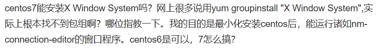 输入命令yum install epel-release后,epel确实成功安装了,但是当我再次尝试安装"X Window System"的时候还是失败了,依旧提示module or group "X Window System" is not available