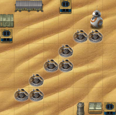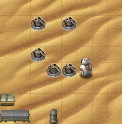 科幻电影《星球大战:原力觉醒》中有一只呆萌可爱的机器人BB-8,它能在恶劣的沙漠中翻滚着前进,速度还挺快。你的任务就是编程指挥BB-8收集沙漠中的废金属。废金属的数量还不少,希望你能用最少的代码完成任务。