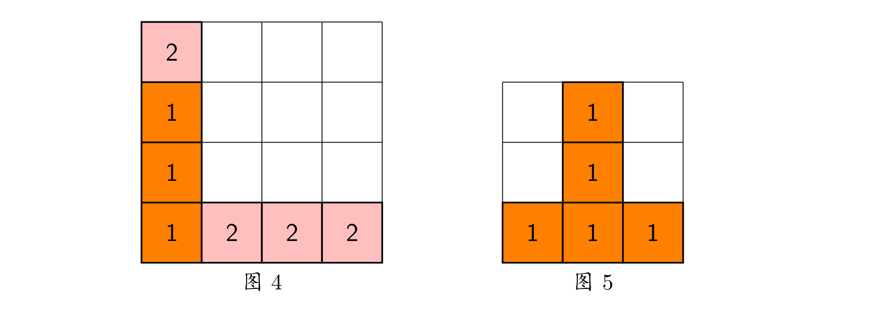 b) 当出现行和列都满足消除条件且行列共享某个方块时,行和列上满足消除条件的所有方块会被同时消除(例如下面图5 所示的情形, 5 5 5 个方块会同时被消除)。