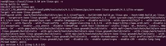 此时你可以在终端输入:arm-linux-gcc -v ,如果安装成功将会输出 arm-linux-gcc的版本号