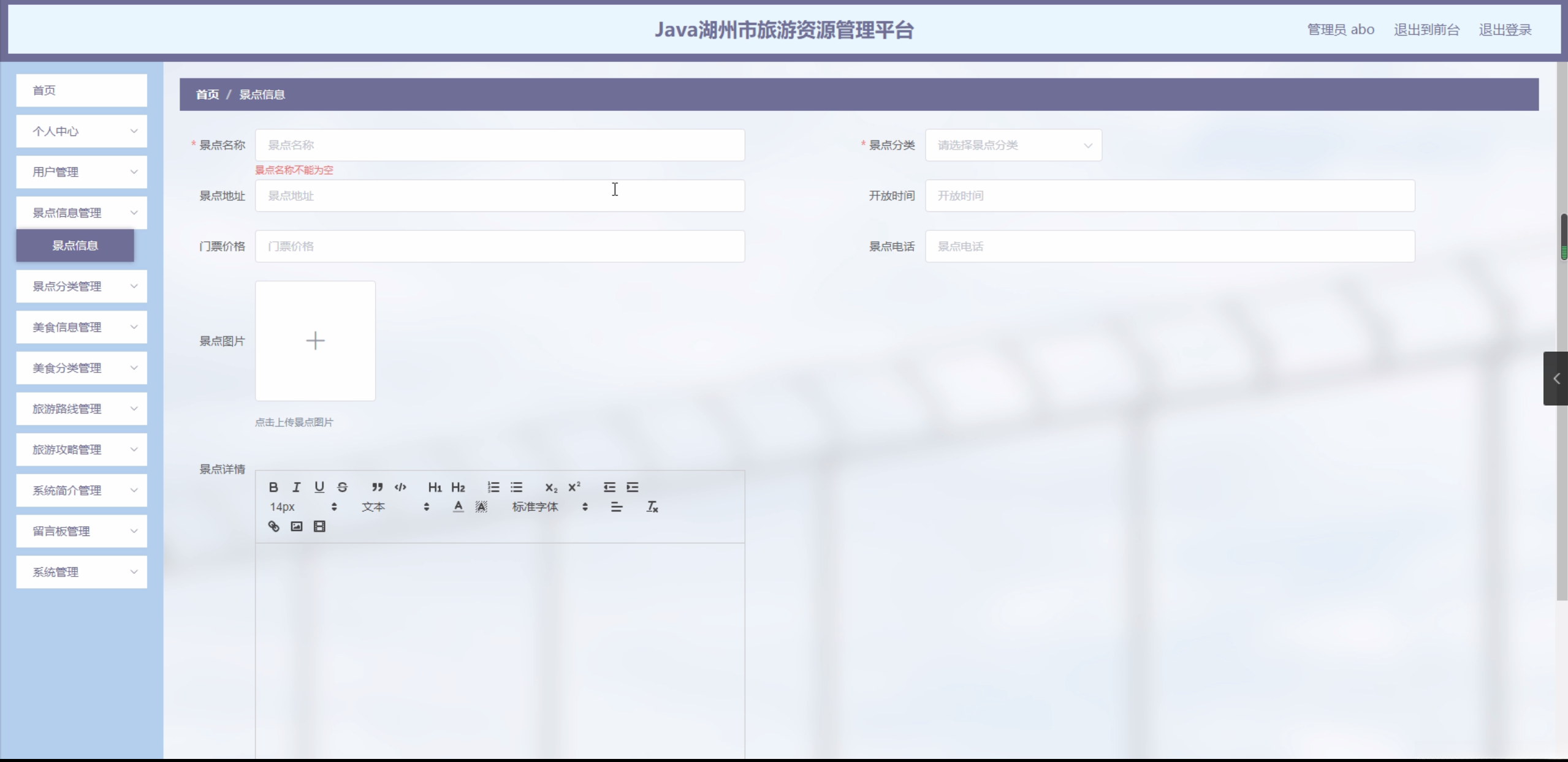 首先,建立湖州市旅游资源管理平台有助于实现旅游资源的可持续利用。通过对旅游资源的合理规划和管理,可以有效避免资源的过度开发和环境破坏,保障湖州市旅游业的长远发展。其次,该平台可以提高湖州市旅游资源的管理水平和服务质量。通过平台的数据分析和智能推荐功能,可以为游客提供更加个性化、便捷的旅游服务,提升游客的满意度。此外,湖州市旅游资源管理平台还可以为政府部门提供决策支持。通过对旅游数据的实时监测和分析,政府可以及时了解旅游业的发展状况,制定相应的政策措施,促进湖州市旅游业的健康、快速发展。总之,建立湖州市旅游资源管理平台对于推动湖州市旅游业的发展具有重要的现实意义和深远的历史意义。