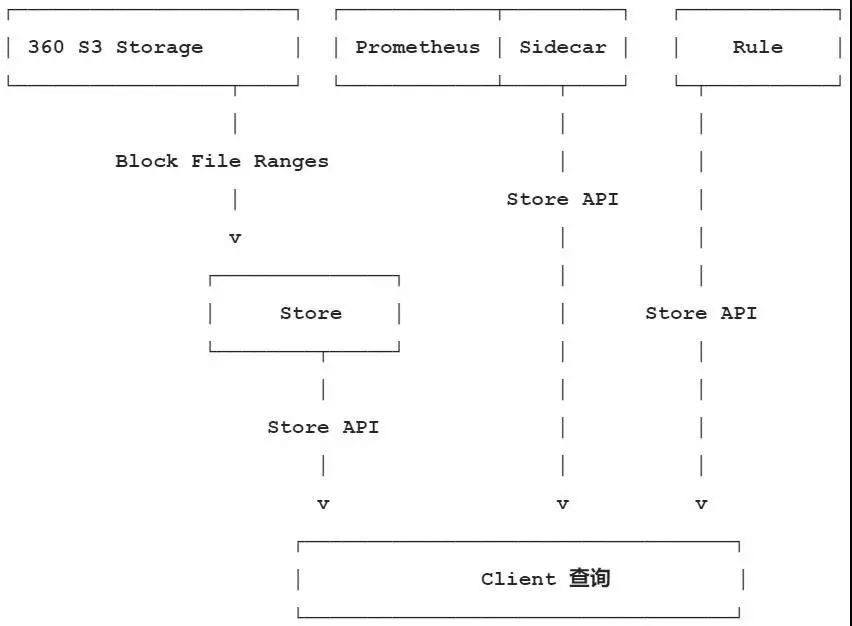 Store 主要提供查询历史数据功能,当Querier组件调用Stroe 接口,Stroe 再通过对象存储接口获取数据,并将存储数据转换成Querier所需的数据格式。