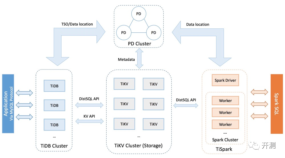 TiSpark 作为 TiDB 中解决用户复杂 OLAP 需求的主要组件,将 Spark SQL 直接运行在 TiDB 存储层上,同时融合 TiKV 分布式集群的优势,并融入大数据社区生态。至此,TiDB 可以通过一套系统,同时支持 OLTP 与OLAP,免除用户数据同步的烦恼。