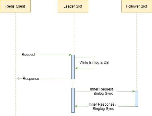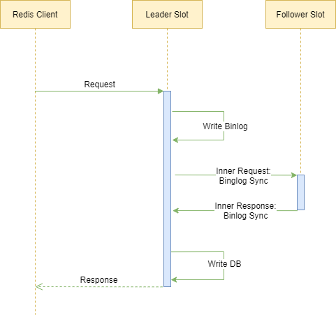 对于需要本地处理的写请求,先通过replication manager模块写binlog,异步复制到其他slot副本。process layer根据一致性的要求,写入leader slot。其中blackwidow是对rocksdb的接口封装。