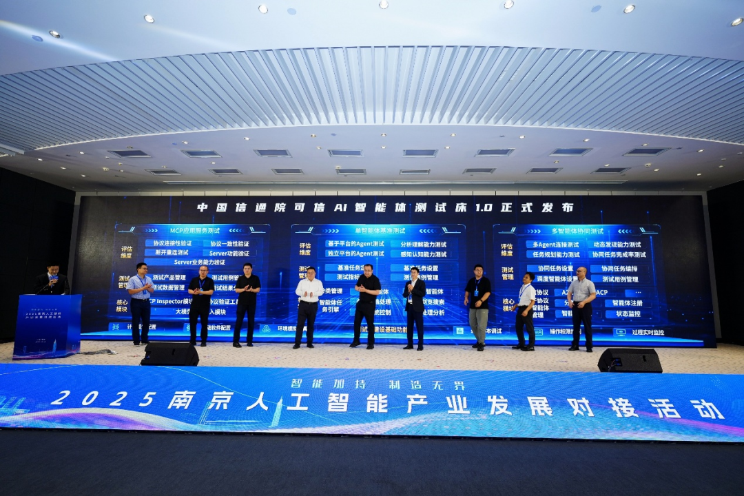 近日,2025南京人工智能产业发展对接活动在南京经开区红枫科技园举行。会上,中国信通院与360、腾讯、华为等8家企业联合发布了“可信AI智能体测试床1.0”,旨在构建覆盖多智能体协同测试的标准化环境,对智能体的理解分析、规划决策、通信交互、任务执行等能力进行全面验证和优化,推动智能体技术从实验室走向产业规模化应用。