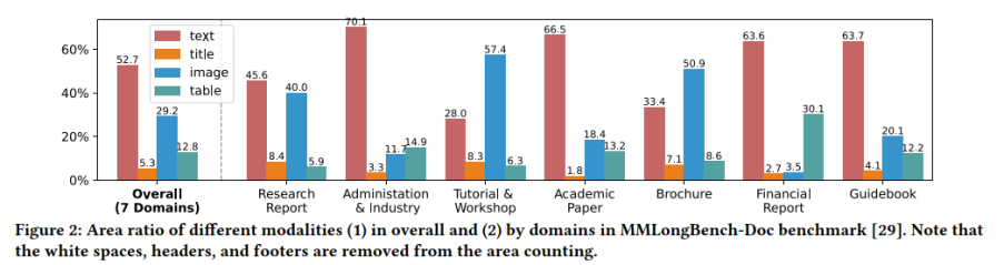 当前主流的Embedding 模型大多聚焦于纯文本信息的处理,在面对企业文档中普遍存在的多模态内容时往往力不从心。这些被忽视的多模态元素包括产品说明书中的示意图、财务报表里的数据表格、工程图纸中的技术图例、科研报告中的实验图表等。根据MMDocIR 发布的《多模态长文档检索基准报告》显示,在典型的办公文档中,多模态内容的占比区间高达 20% 至 70%,不同行业文档的多模态密度呈现显著差异 —— 制造业技术手册的图文混排率超过 65%,金融分析报告的数据表格占比达 30%,医疗病例中的影像与文字结合更是常态。这种对多模态内容的天然 “盲区”,让传统 Embedding 模型在企业级知识检索中频频 “失准”,严重制约了 RAG 技术的落地价值。