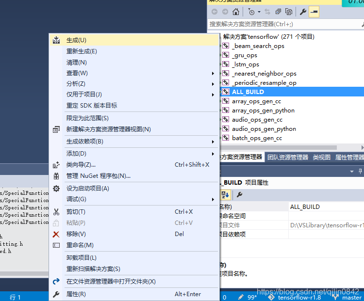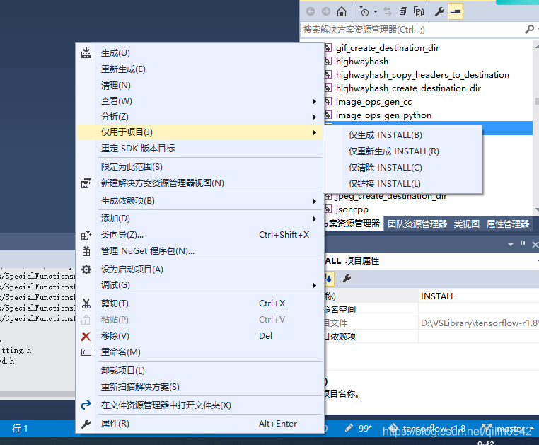 打开tensorflow.sln(路径在build/Release或者Debug)。