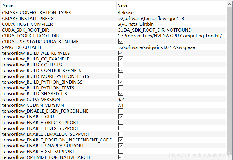 勾选tensorflow_ENABLE_GPU(GPU版本tensorflow选);