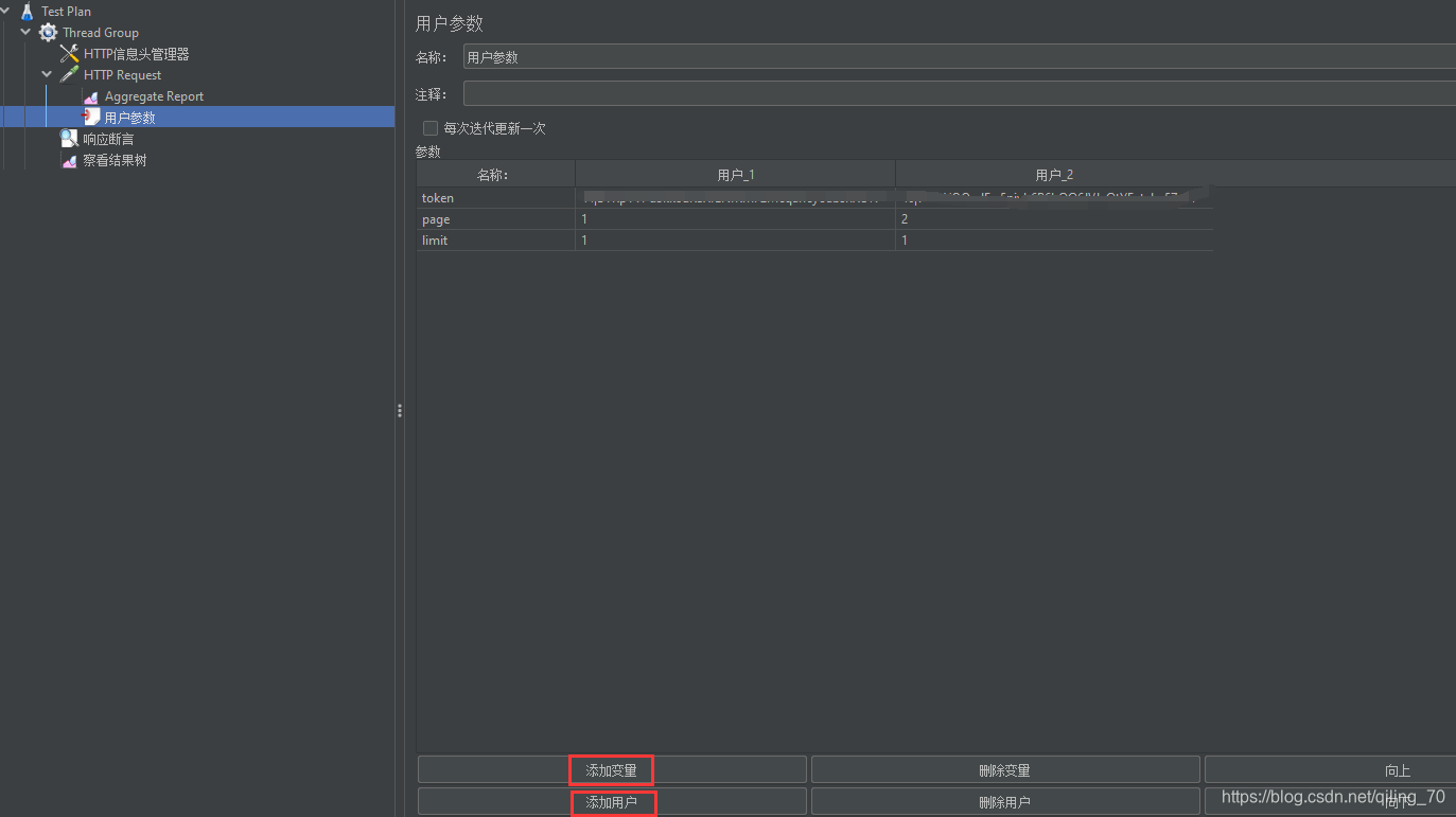 经常有些接口需要模拟多用户并发场景,此时需要先把需要分组的参数设为${key1},${key2}。然后添加用户参数,为每位用户添加key1、key2参数。如果是统一参数还可以继续写在http请求页,写成固定值即可。