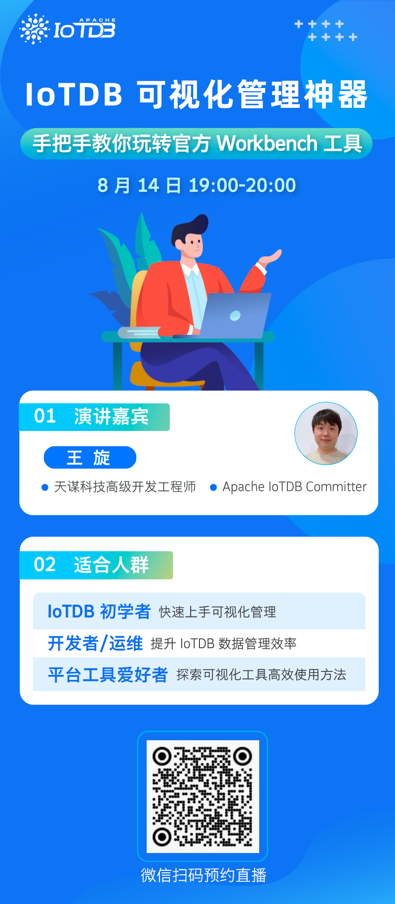 📆8 月 14 日(周四)19:00,天谋科技全栈研发工程师,Apache IoTDB Committer 王旋带您快速了解 Workbench 核心功能与实战技巧!