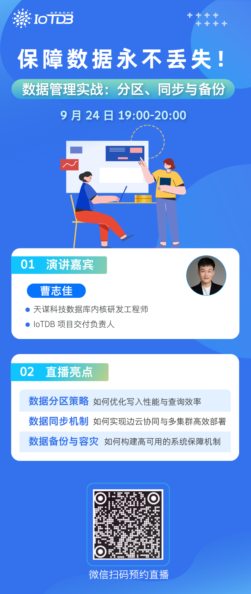 📆9 月 24 日(周三)19:00,天谋科技数据库内核研发工程师,IoTDB 项目交付负责人曹志佳为您一一解答上述问题!